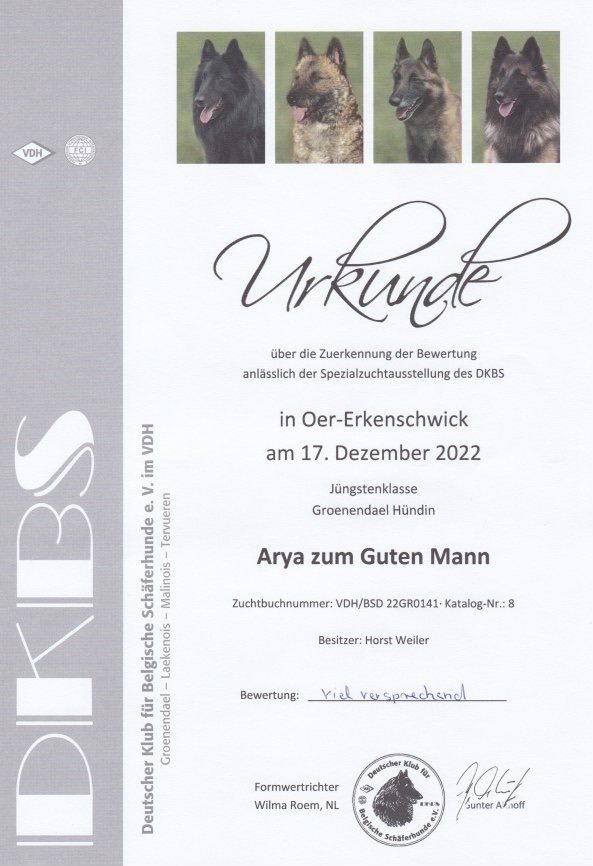 Wir sind so stolz auf unseren Nachwuchs, Amon und Arya zum Guten Mann haben auf der Speziale die Zuchtzulassung erhalten.