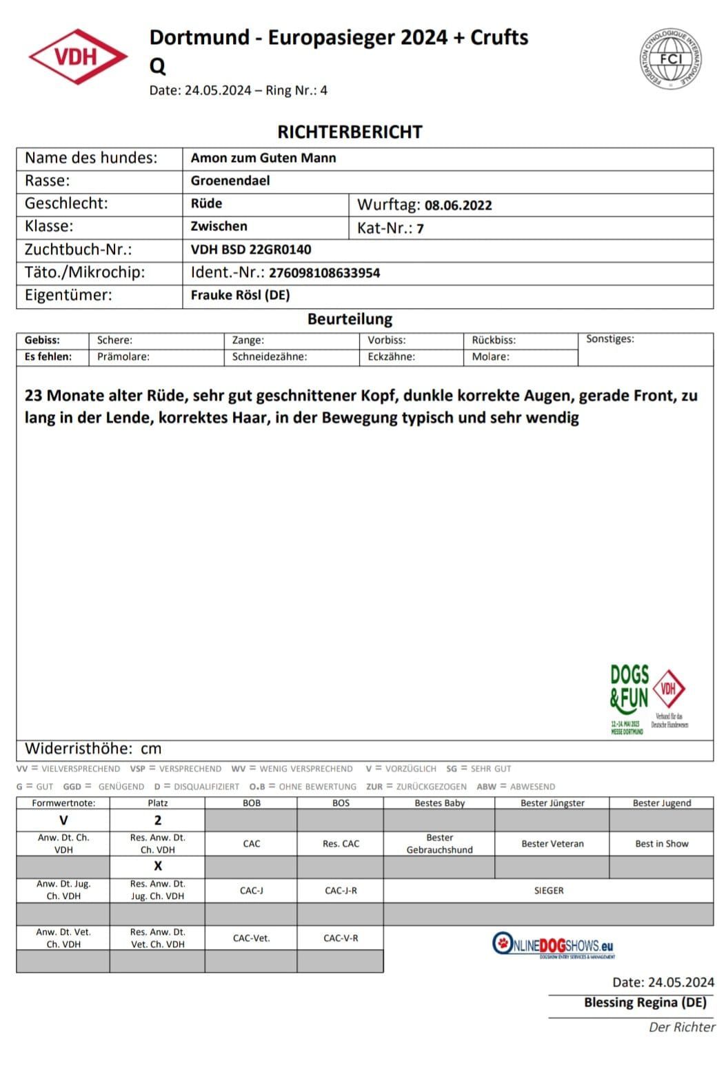 Herzlichen Glückwunsch Amon, so jung und schon Deutscher Champion, danke Frauke und Walter das Ihr so viel in den kleinen investiert, Ihr seid ein tolles Team.