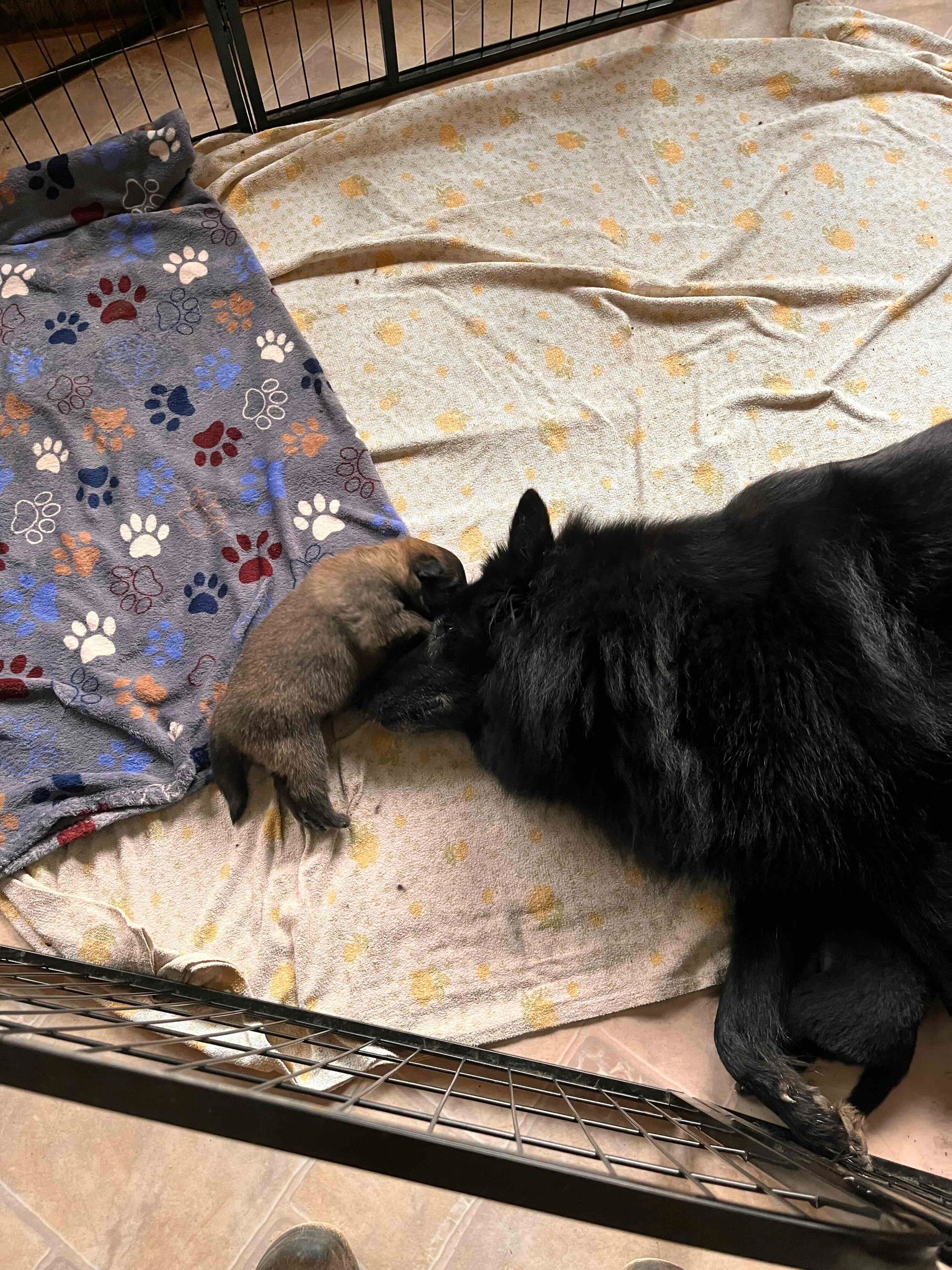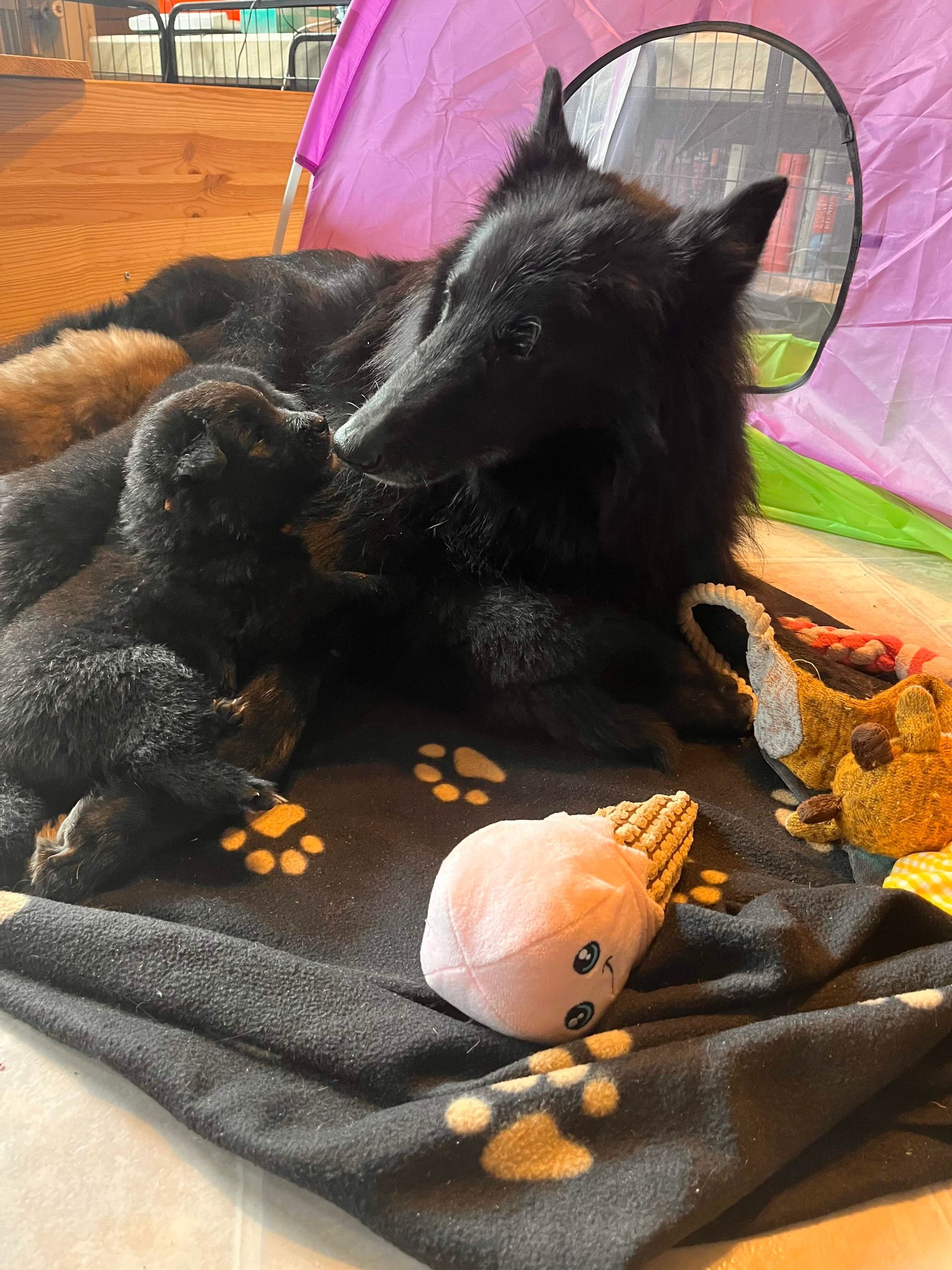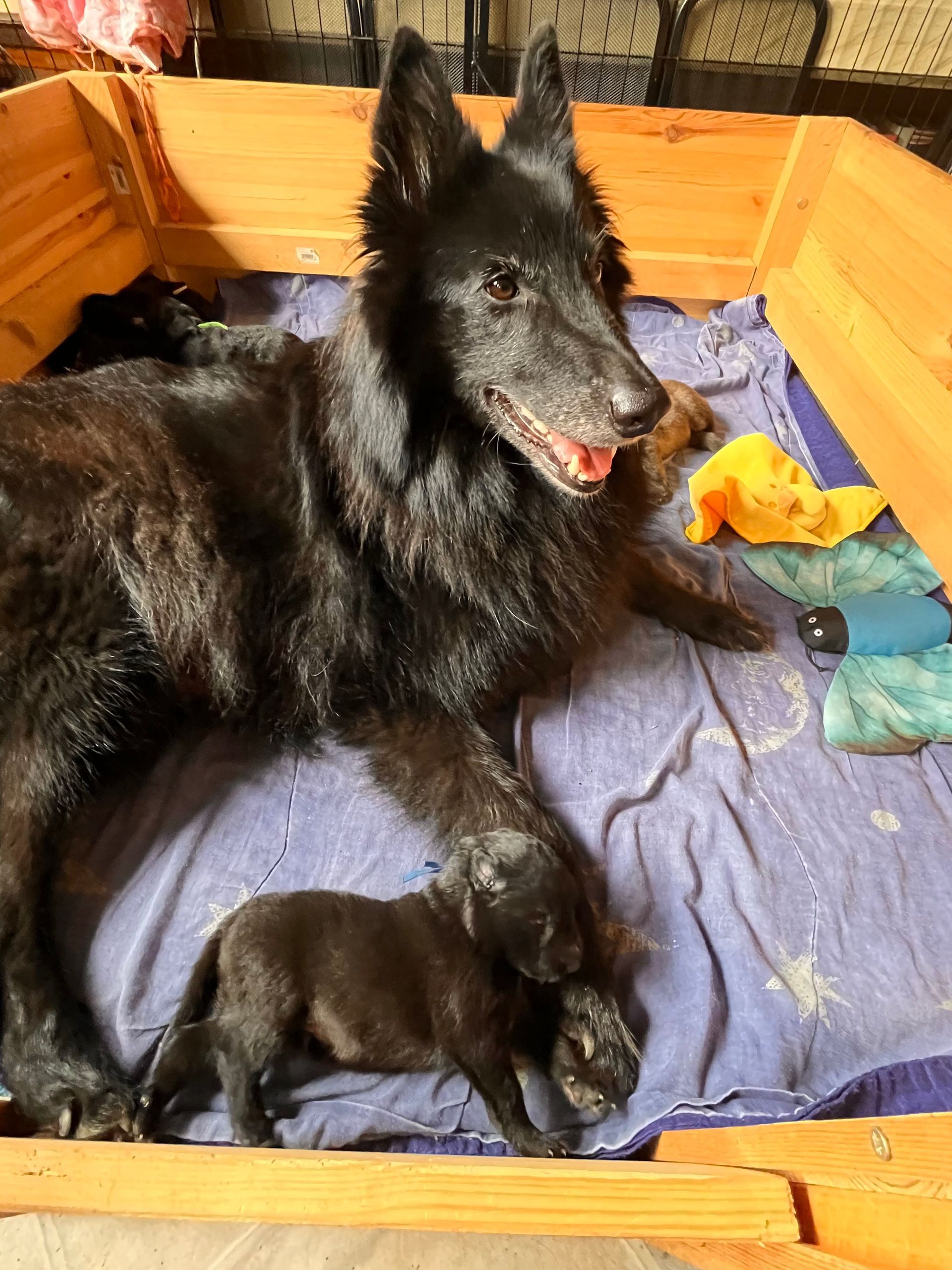 Am 28.09.2025 war es endlich soweit, unser D-Wurf wurde geboren, 3 Rüden davon 1 Tevuere und 3 Hündinnen. Fleur hat uns das ganze Wochenende auf Trapp gehalten, es war das erste Mal das die Welpen bis zum 63 Tag gewartet haben, alle sind wohlauf und schon sehr proper.