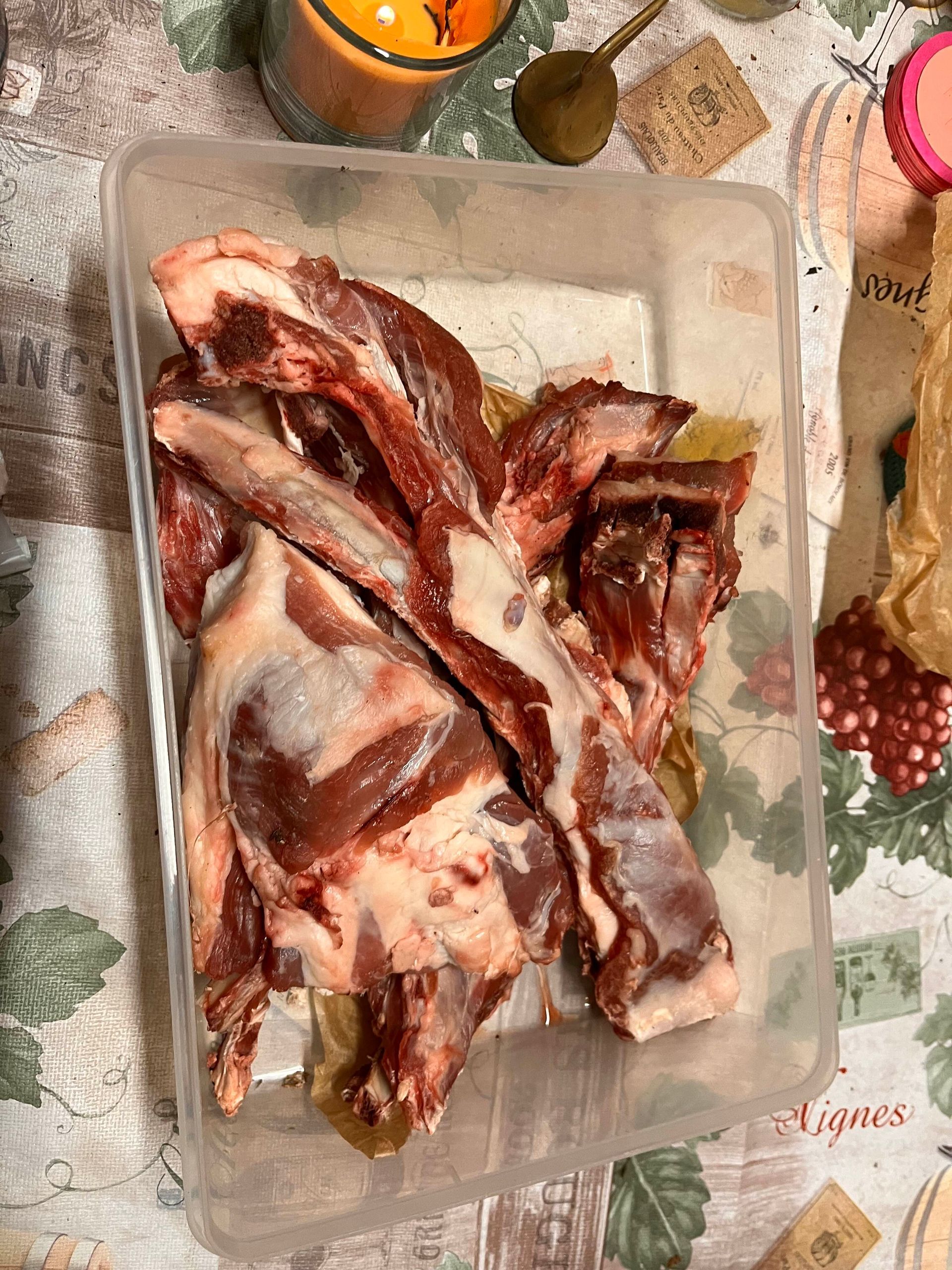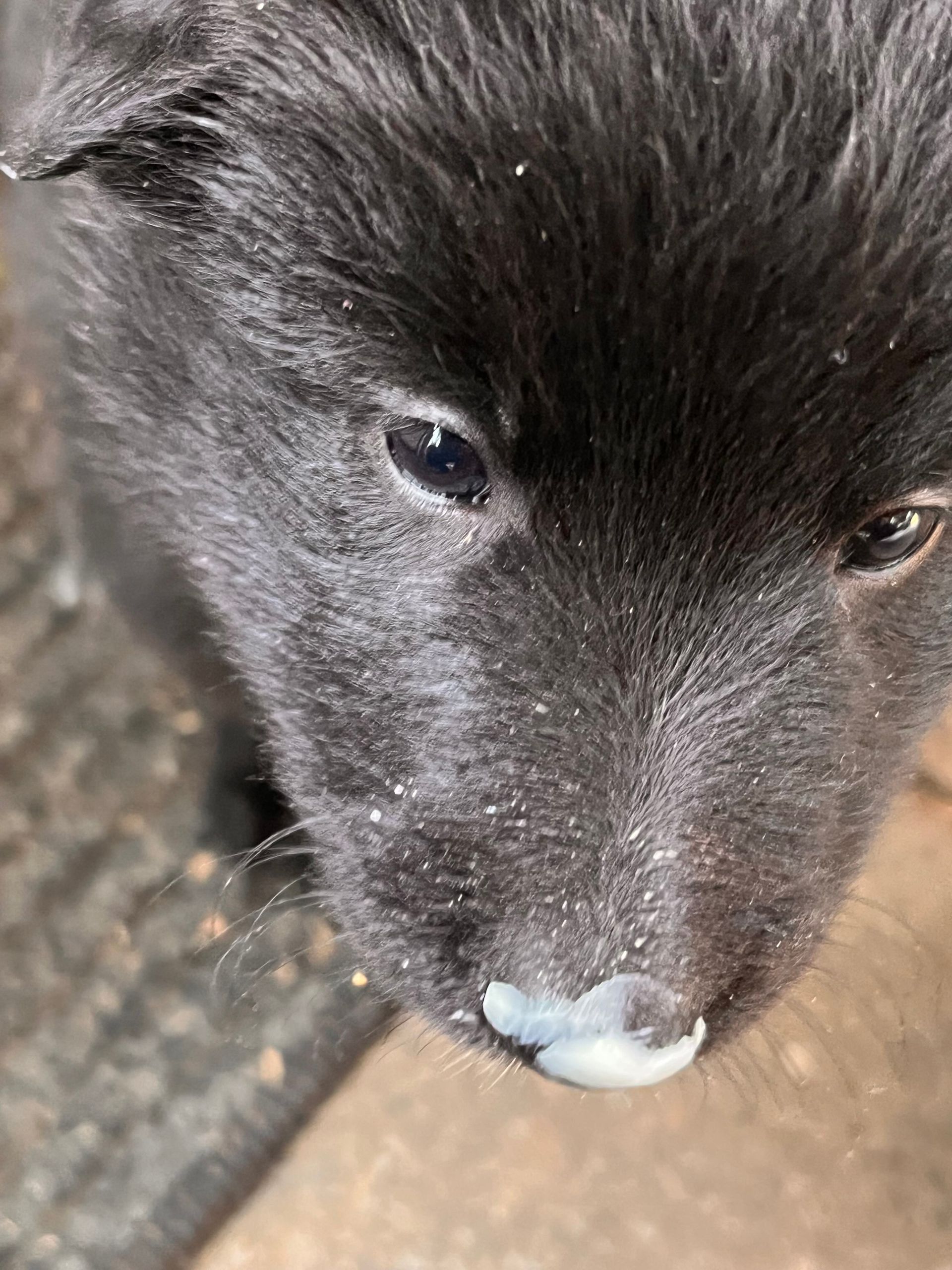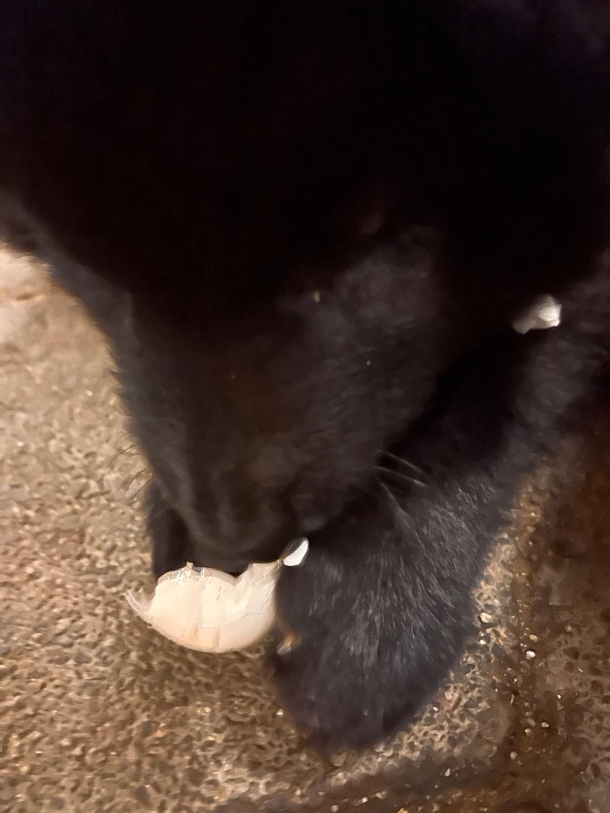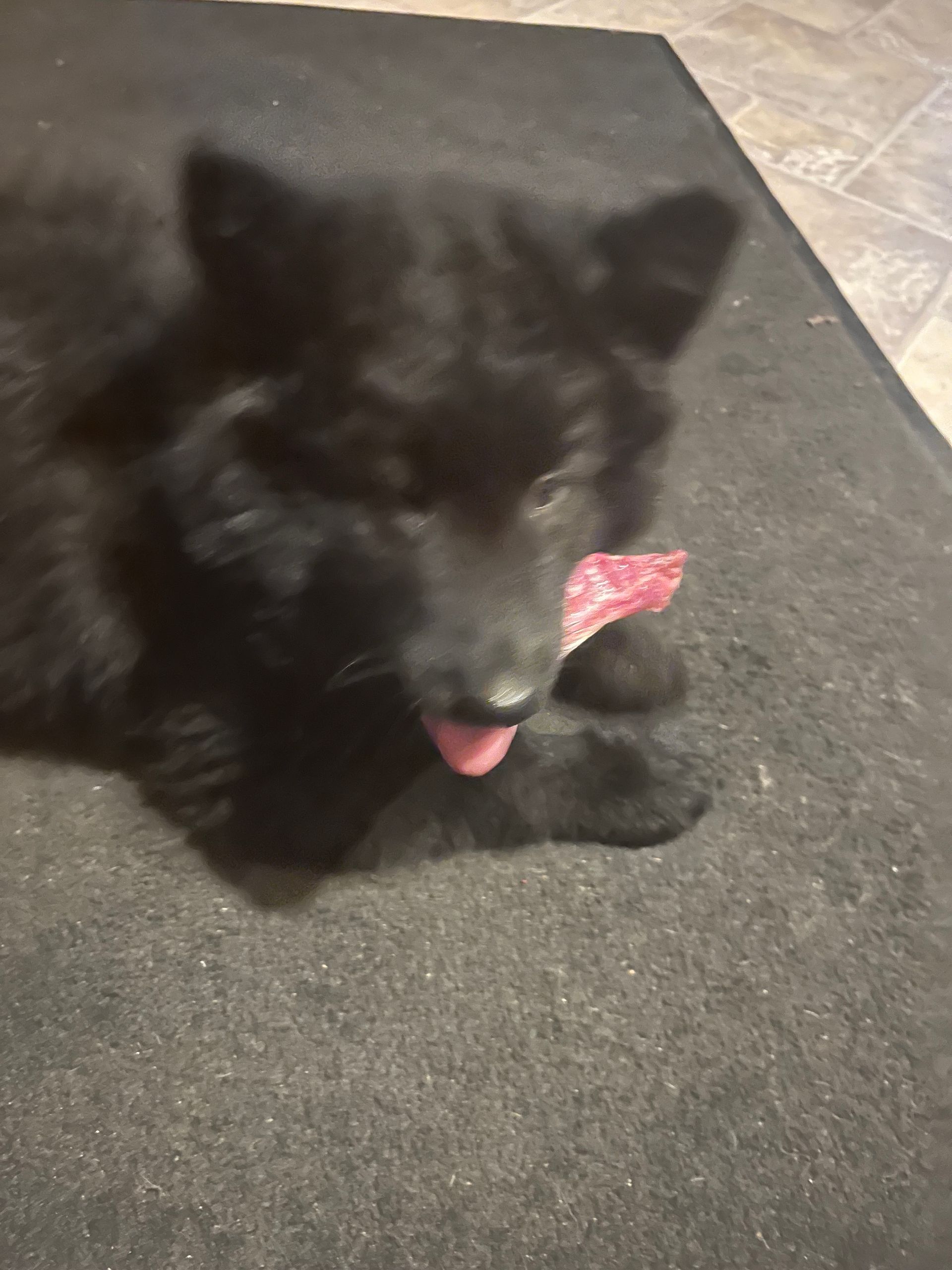 Als leckeres füttern wir überwiegend selbst gedörrte Innereien vom Rind. Heute gab es auch das erste mal Eierschalen.