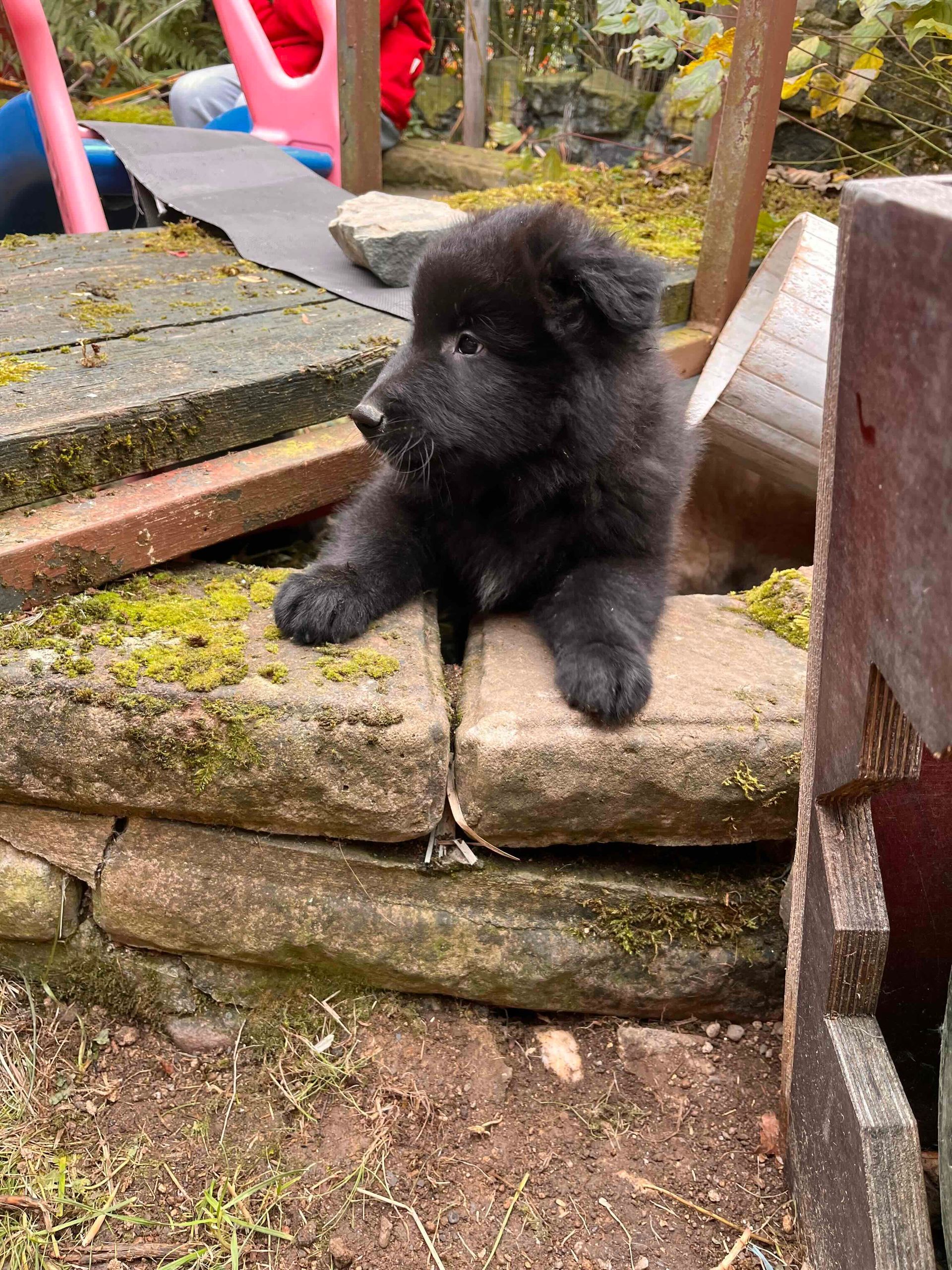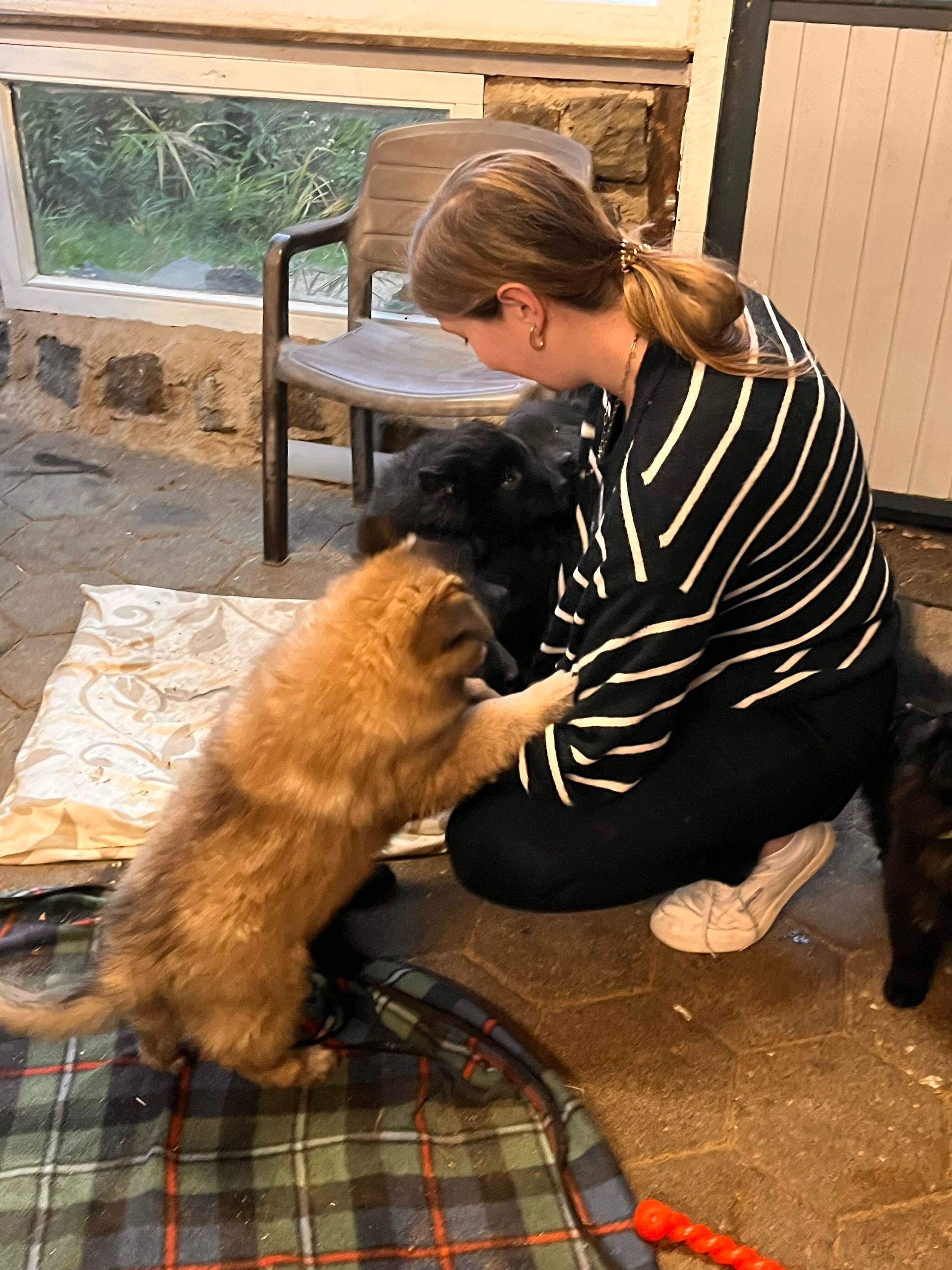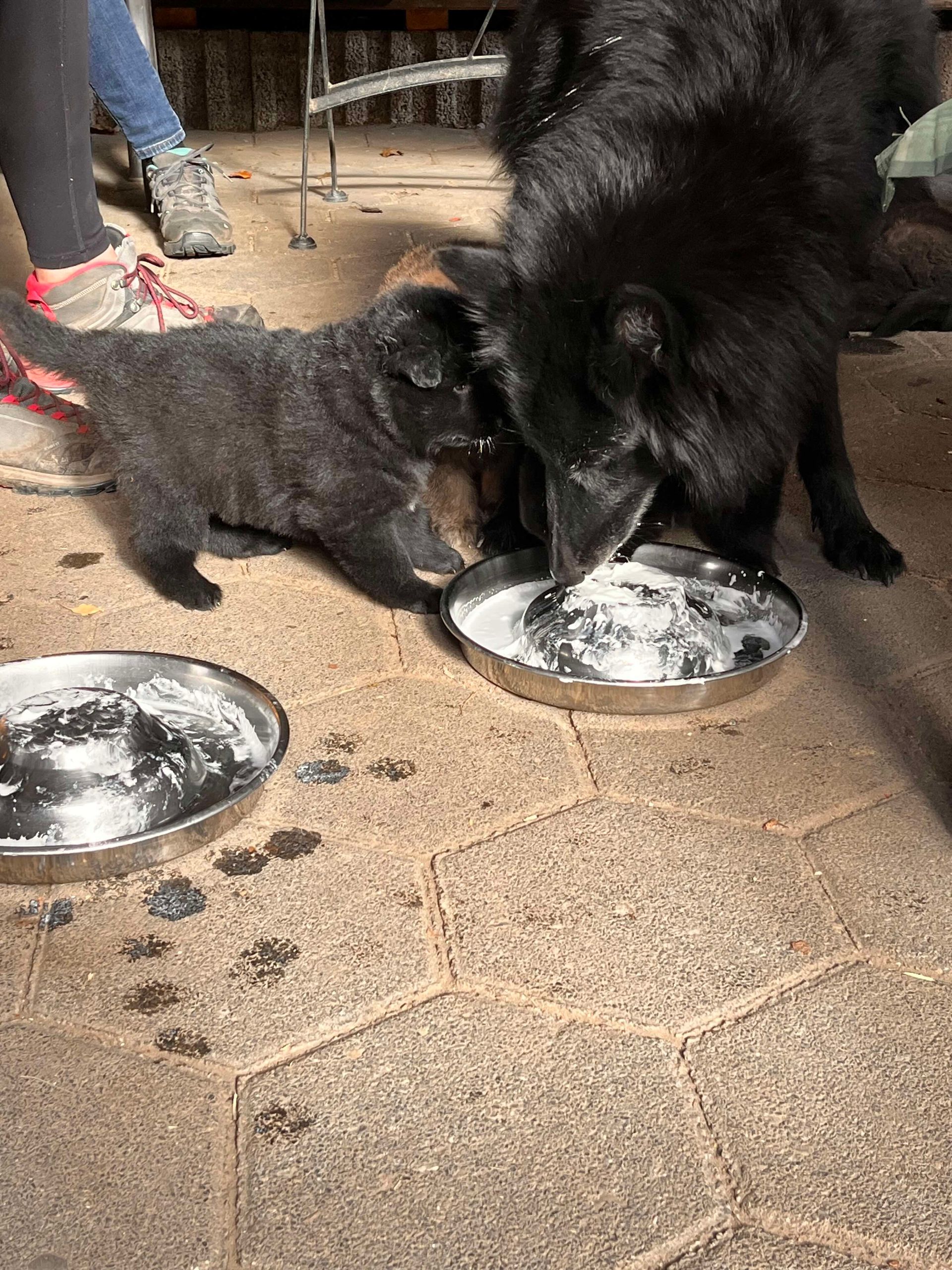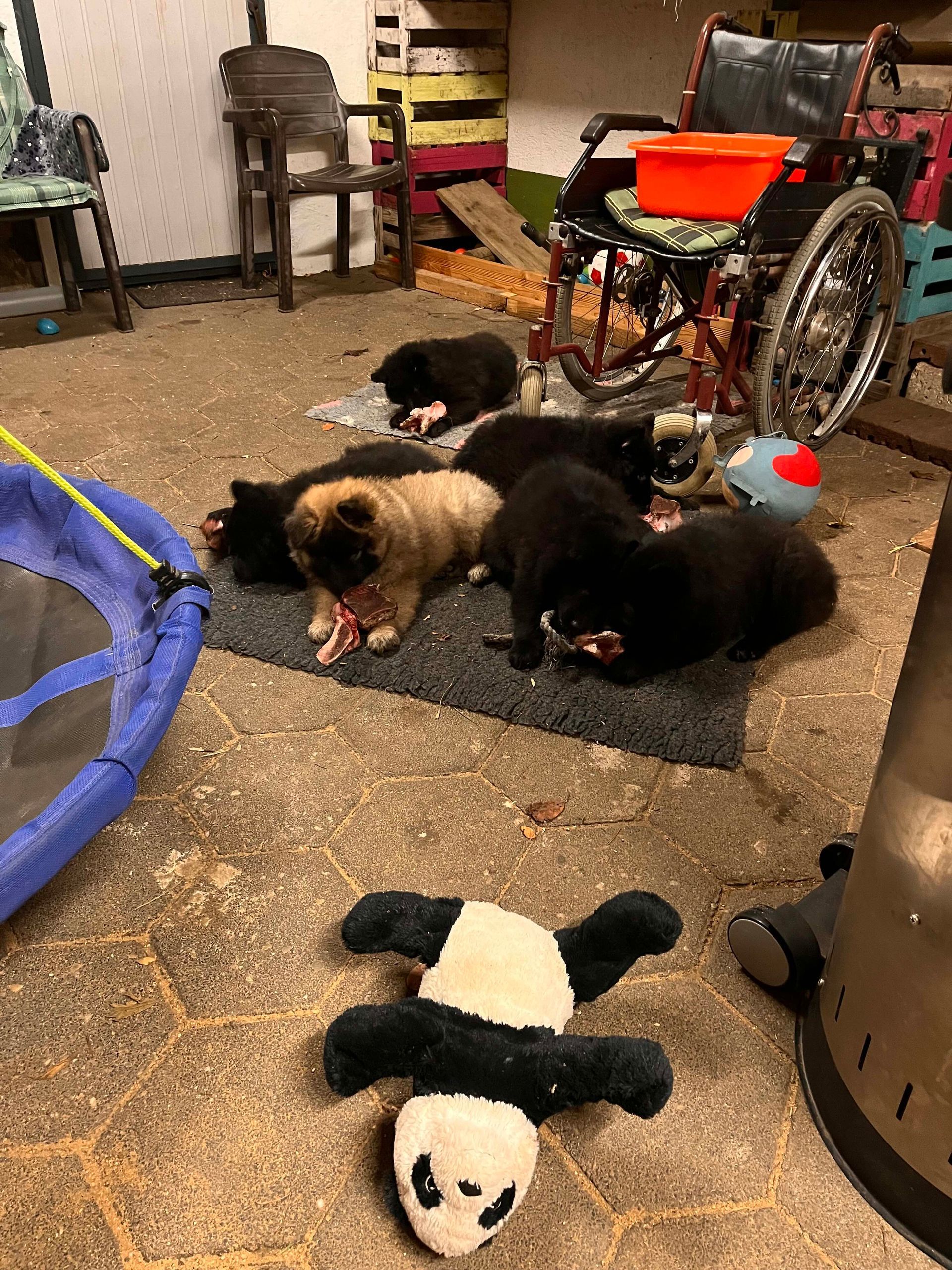 Heute war ein voller Besuchstag, morgens waren Marlena und Patrick da, die neuen Besitzer von Gaia und Nachmittags kam Eric mit Freunden. Wir legen sehr viel Wert darauf das die Welpen von Anfang an mit vielen Menschen zusammen kommen. Danke an alle, es war ein schöner Nachmittag.