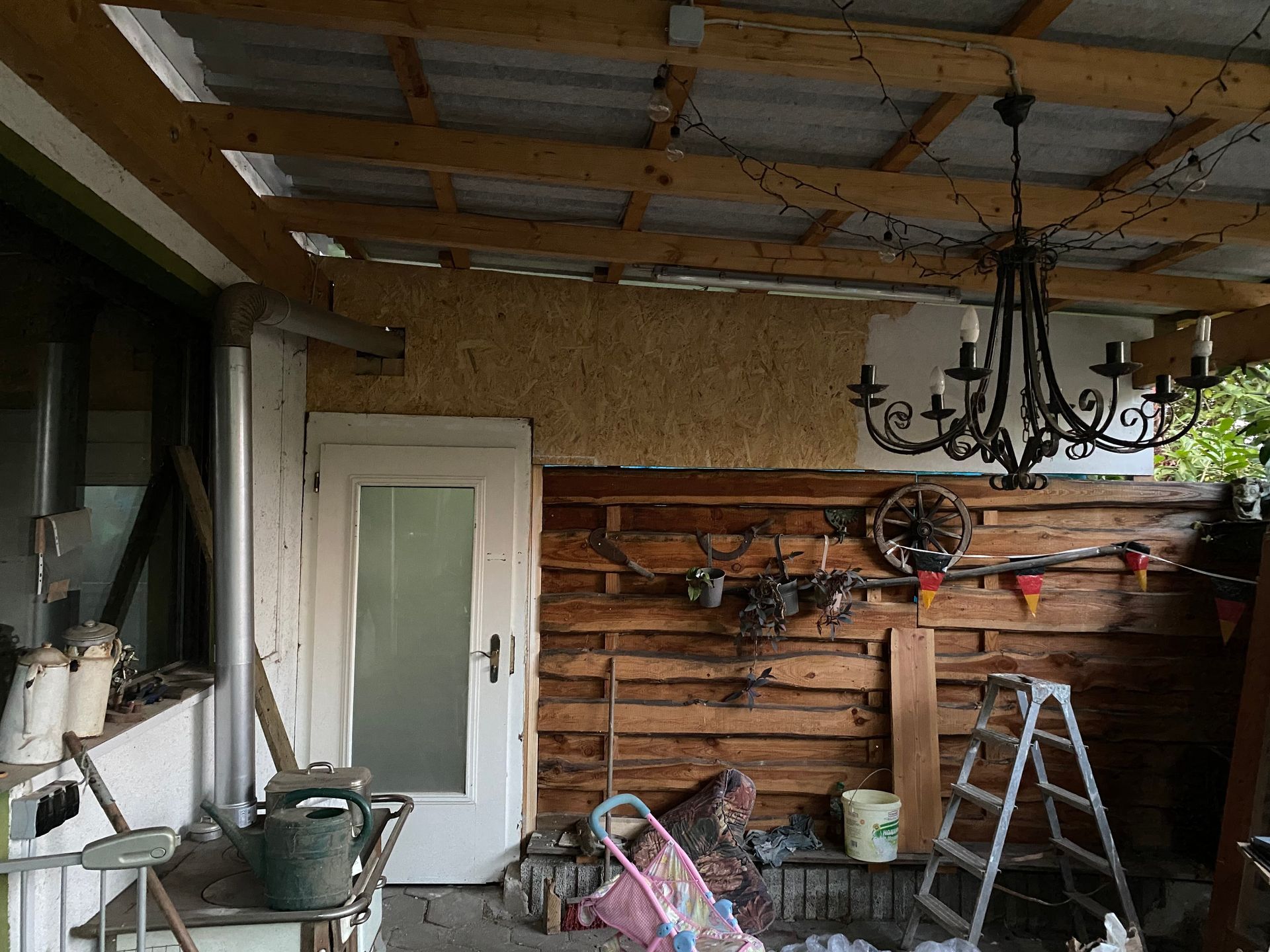 Da die Welpen ab der 5 Woche auf jeden Fall im Freien sein werden sind wir unsere Terrasse am modifizieren, die eine Seite ist fertig an der anderen wird noch gearbeitet .