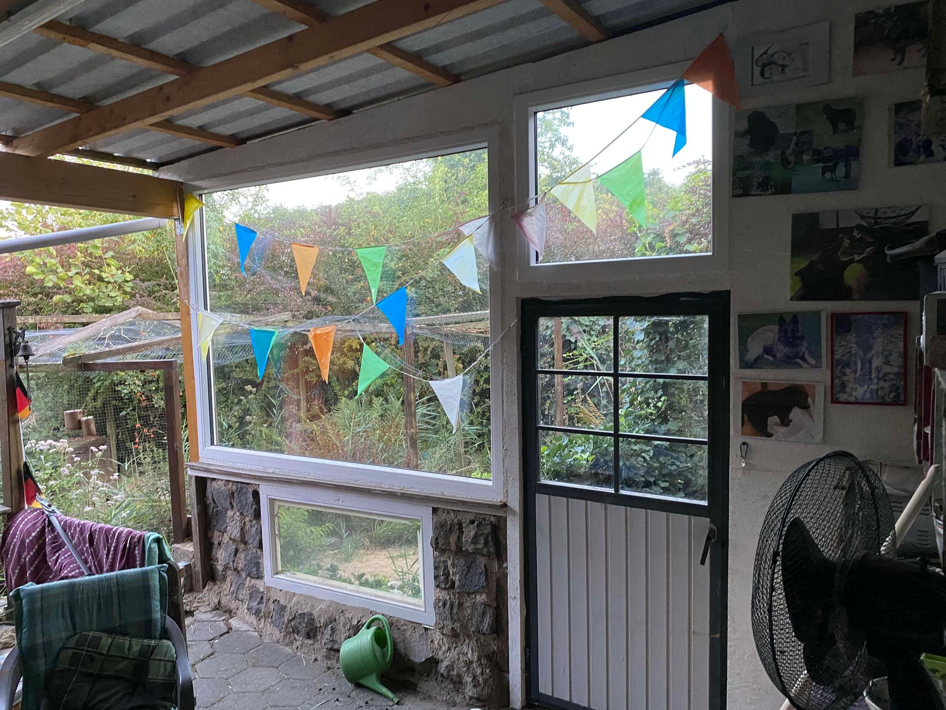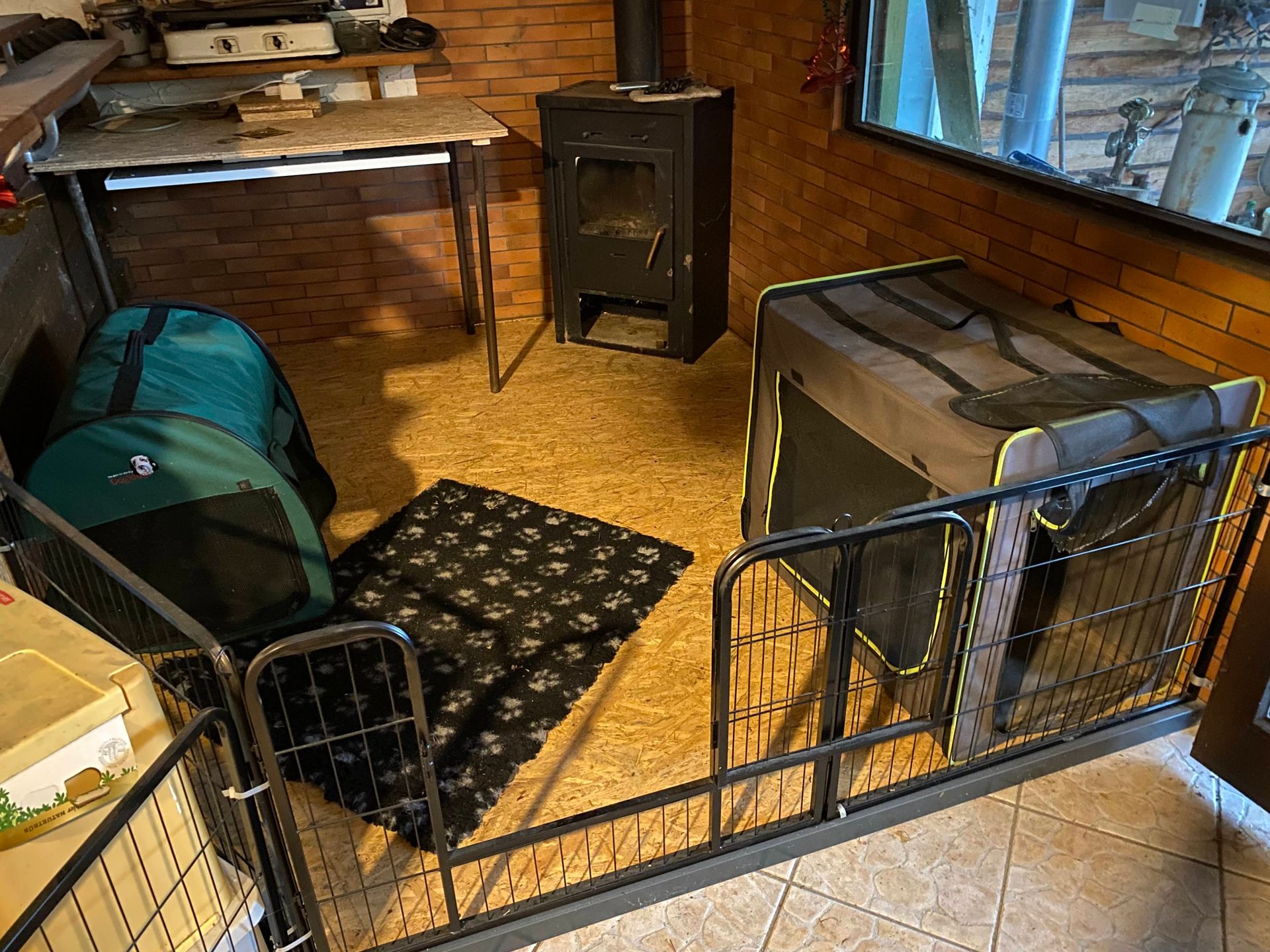 Der Welpenraum ist fertig, die Infrarotheizung hängt und funktioniert, es fehlt noch die Raumheizung für Frauchen.