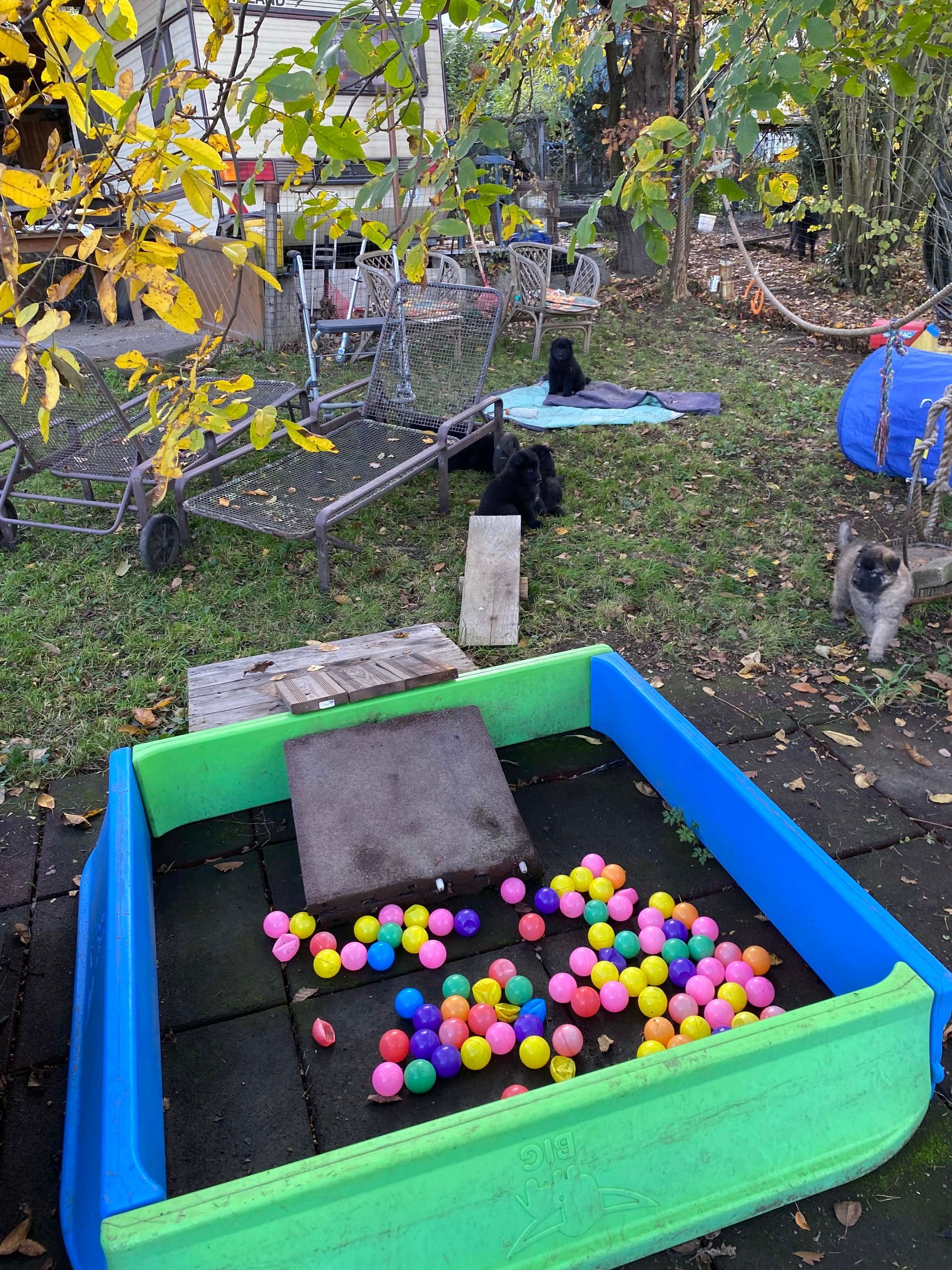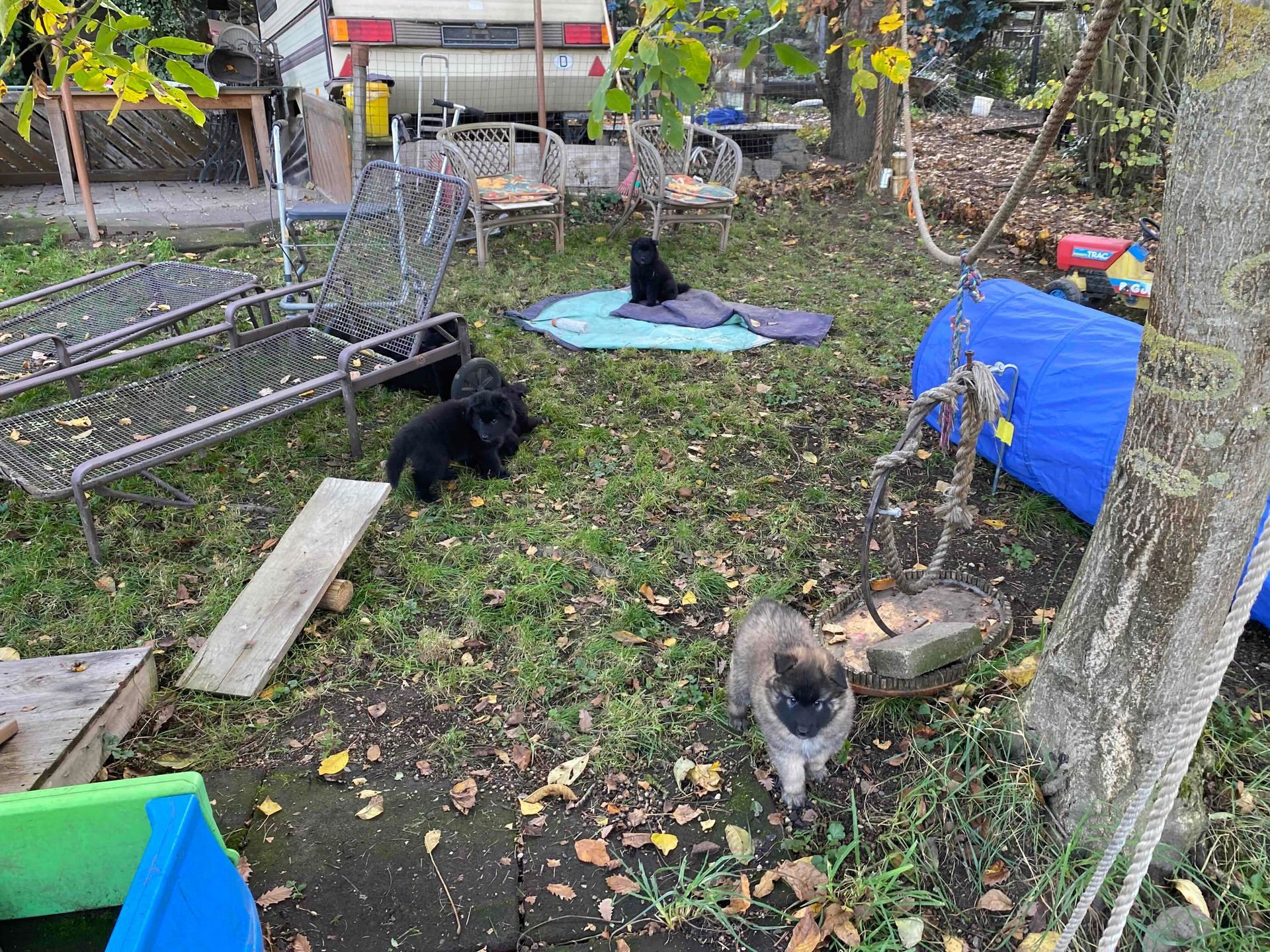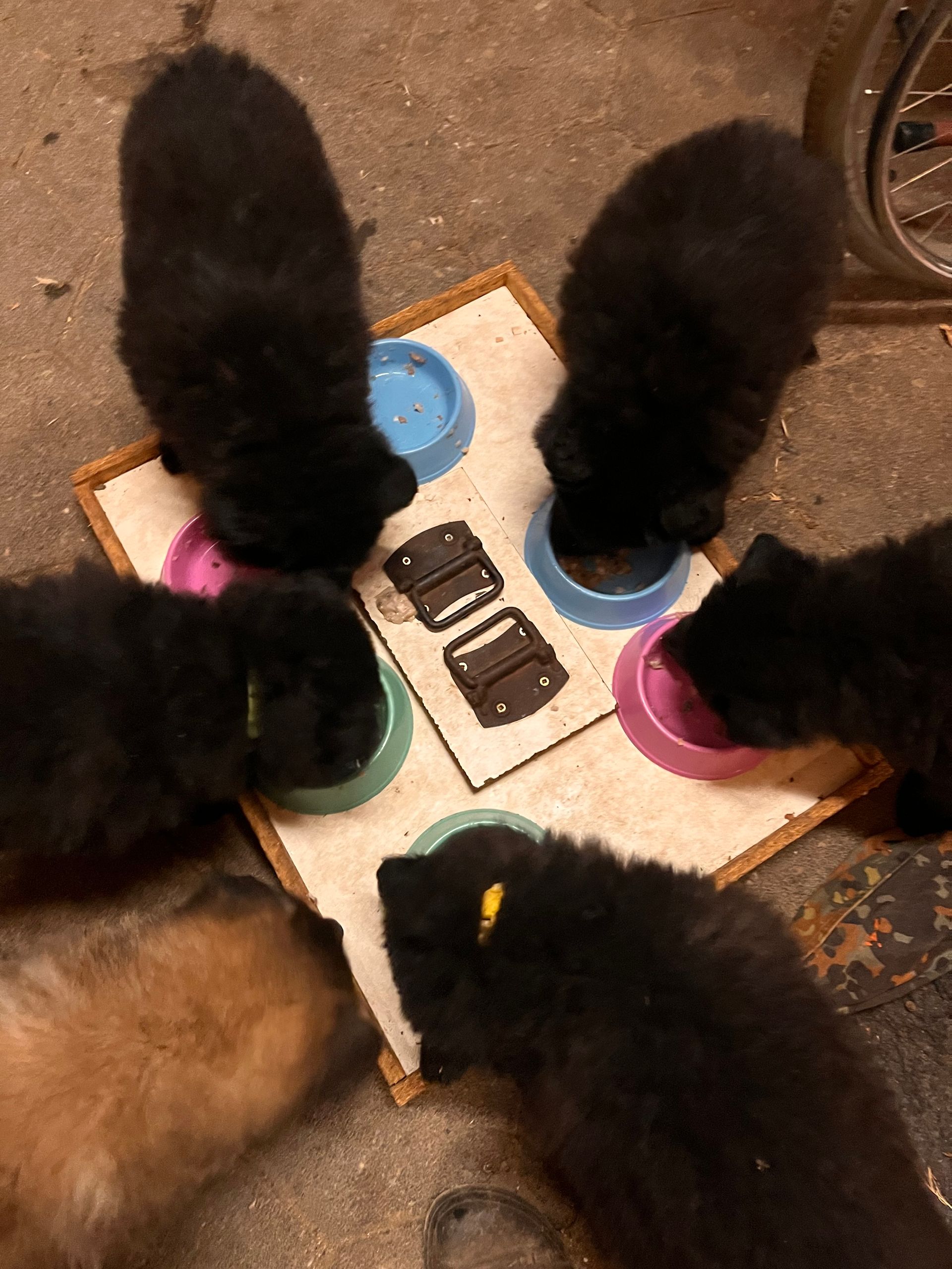 Wir haben jetzt jeden Tag Besuch, die kleinen entwickeln sich prächtig, die zwei großen sind Senna und Dexter aus dem C-Wurf die zu Besuch waren, so groß ist der D-Wurf in einem halben Jahr.