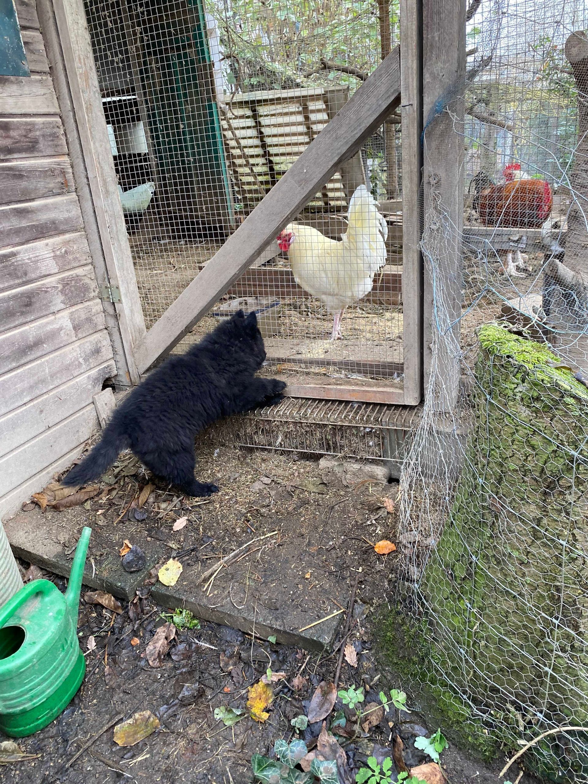 Die kleinen machen uns viel Freude, sie sind offen und selbstbewußt, gehen neugierig auf alles zu, auch das Rasenmähen hat nur zu einem kurzen Zögern geführt, hab leider kein Bild davon da mir eine Hand gefehlt hat. Morgens sind die kleinen auf der Terrasse und dem kleinen Garten, anschließend kommen sie in den großen Garten.