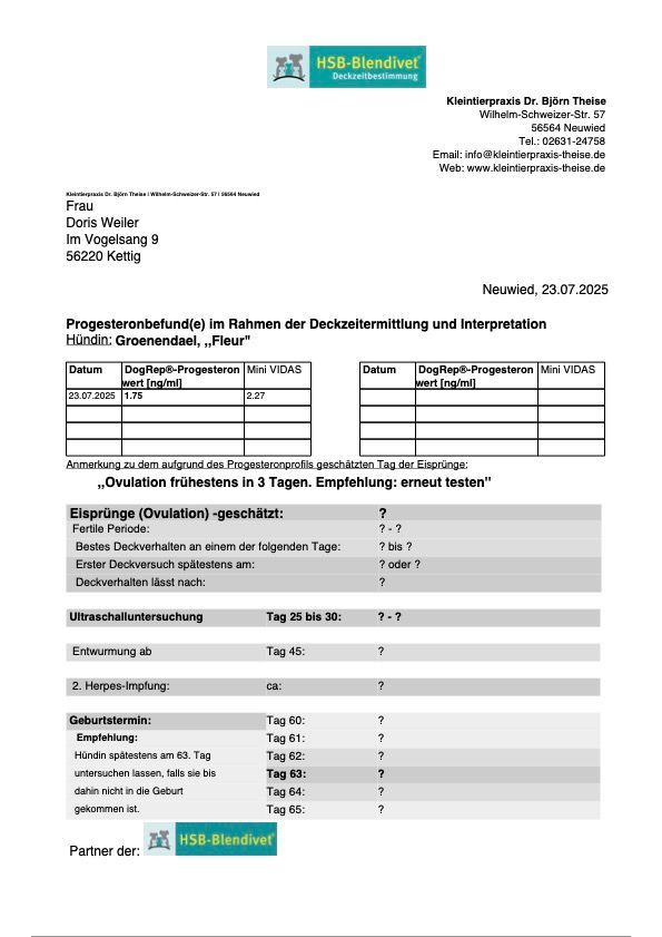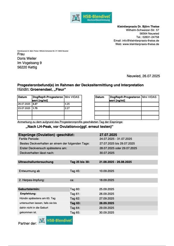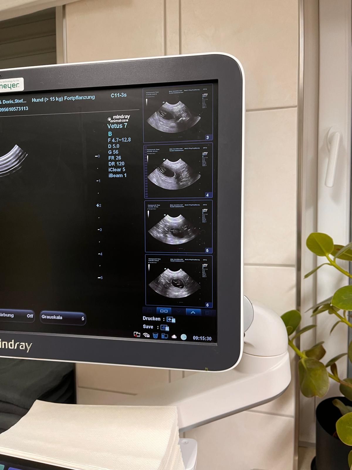 Wir sind so glücklich, Fleur ist belegt. Beim Ultraschall wurden 6 Welpen gezählt.