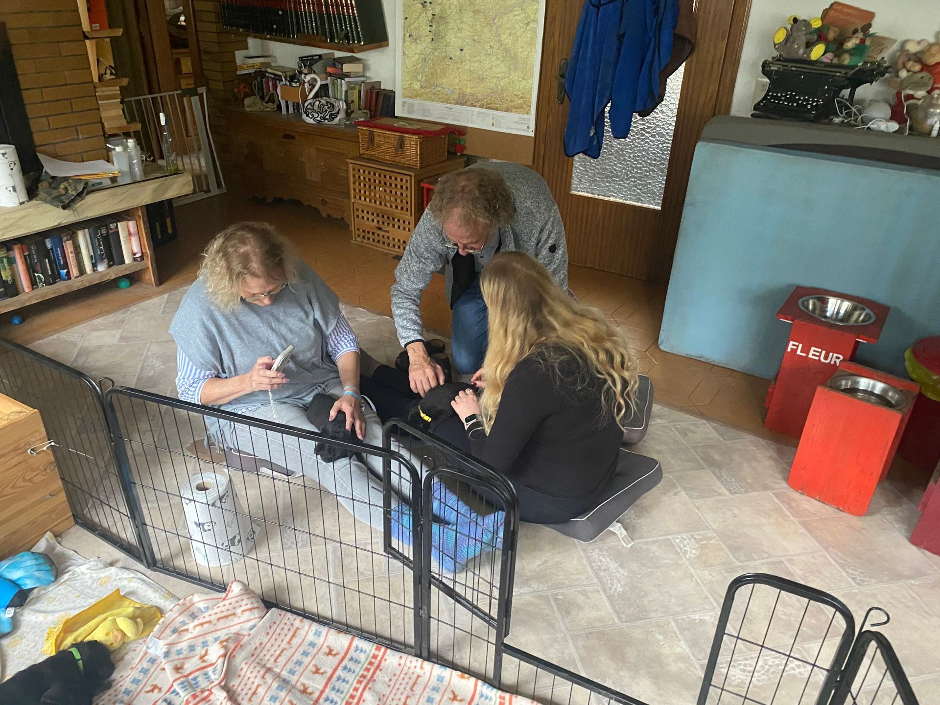 Das Wochenende war für die Welpen sehr spannen, der Samstag begann mit Katharina und ihren Eltern, anschließend kamen Carmen mit ihren Kindern. Am Nachmittag kam dann Sabine mit ihrem Mann und ihrer Tochter, sie interessieren sich für einen Welpen aus dem E-Wurf. Den Abschluss machte dann Sabine und Matthias mit Baxter (aus unserem B-Wurf)